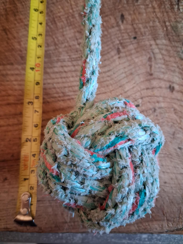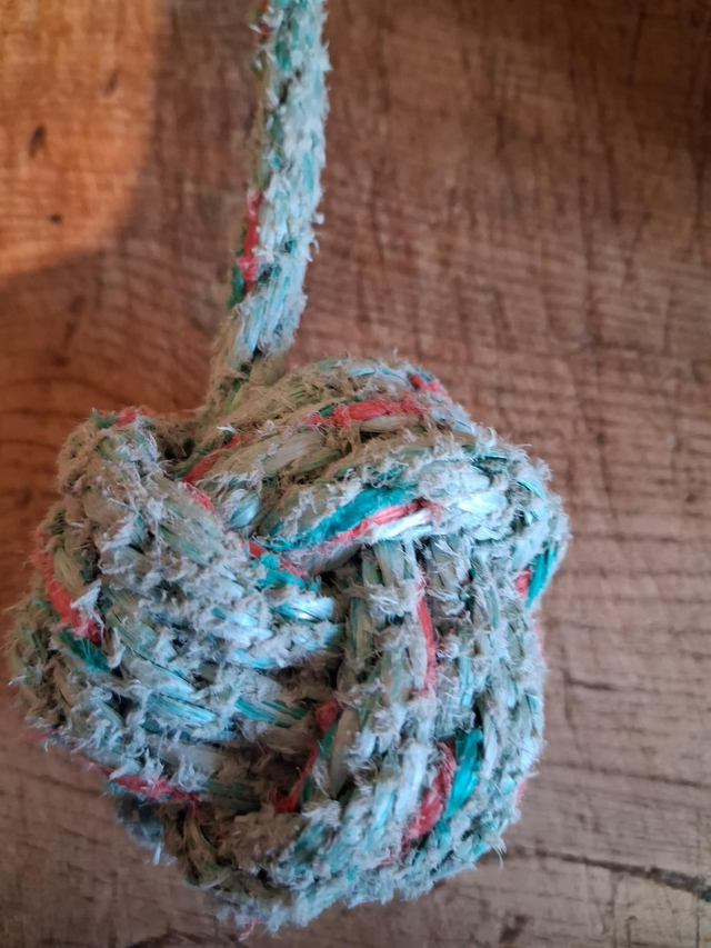 Introducing our handmade traditional Monkeys Fist knot dog toy made from locally sourced Ghostgear.
